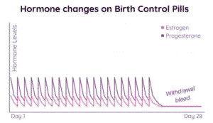 Pilulele contraceptive orale (OCP) sunt de obicei o combinație de estrogen și progestin timp de trei săptămâni, urmate de o săptămână de placebo. Sângerarea apare în săptămâna de placebo. Unele OCP oferă un ciclu continuu de estrogen și progesteron, aceasta se numește un model hormonal ciclic minimal; fără ovulație, fără fază foliculară sau luteală. Majoritatea se iau timp de 21 de zile, urmate de o pauză de 7 zile pentru un ciclu controlat.